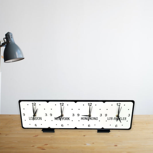 Bespoke Named Square Four Time Zones Clocks & Desk Stand (Many Colour Choices)