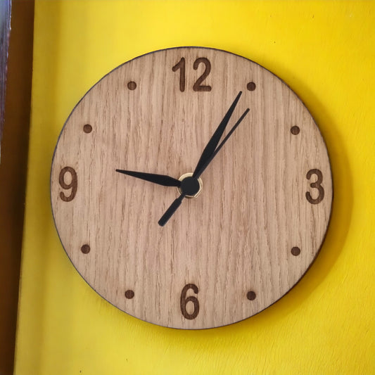 Wooden Numbered Round Clocks - Silent Sweep Movement, Custom Engraving, Different Colour Hands/Woods, in Many Sizes