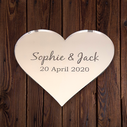 Dessous de verre miroir gravés personnalisés en forme de cœur