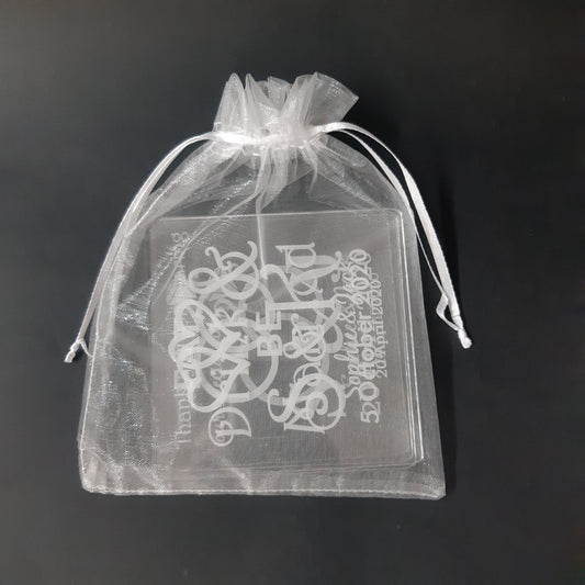 Dessous de verre transparents avec cœurs et initiales joints pour mariage