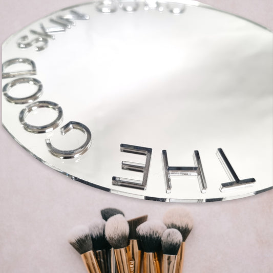 Miroirs ronds sur mesure découpés en forme de noms avec support blanc et crochets
