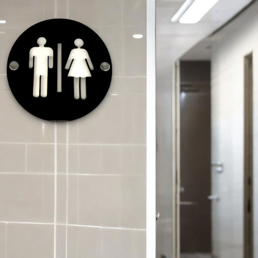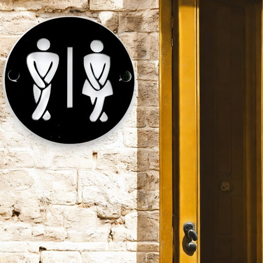 Panneaux de toilettes ronds ou carrés pour hommes et femmes - Couleurs et finitions bois personnalisées, libellés, tailles et formes personnalisés