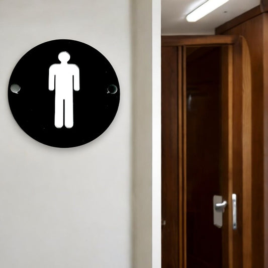 Panneaux ronds ou carrés pour toilettes pour hommes - Couleurs et finitions bois personnalisées, libellés, tailles et formes personnalisés