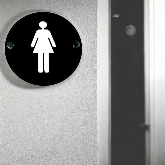 Panneaux ronds ou carrés pour toilettes pour femmes - Couleurs et finitions bois personnalisées, libellés, tailles et formes personnalisés