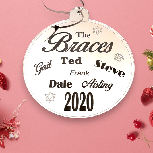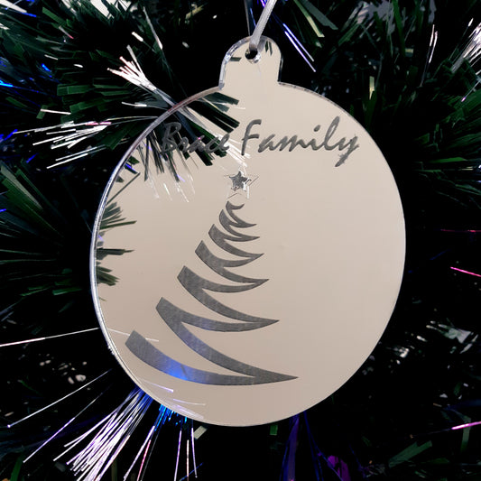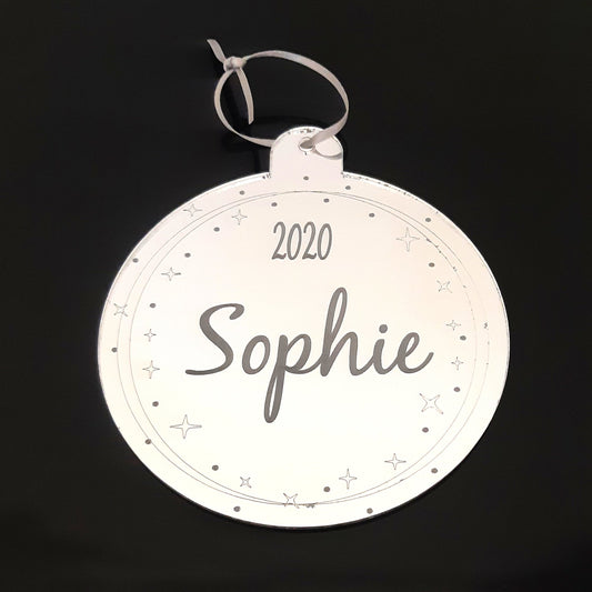 Boule de Noël sur mesure gravée « Nom et année » en miroir
