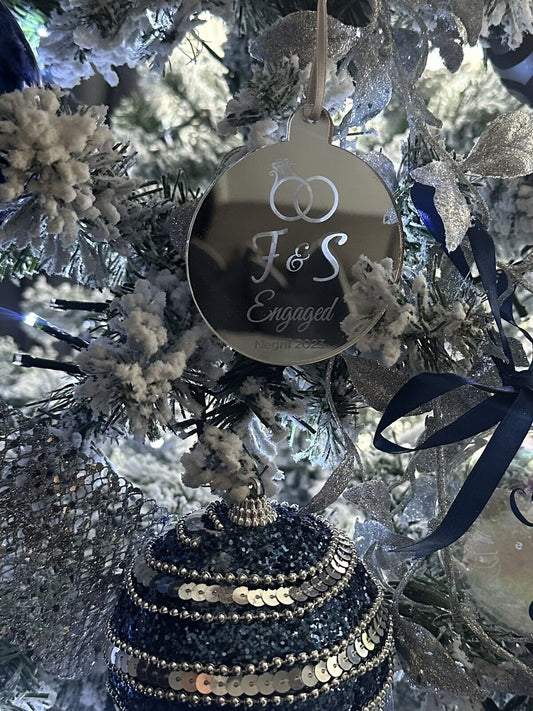 Boule de Noël gravée « Nom et date de fiançailles », personnalisable, plusieurs couleurs