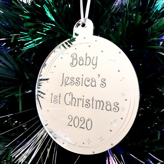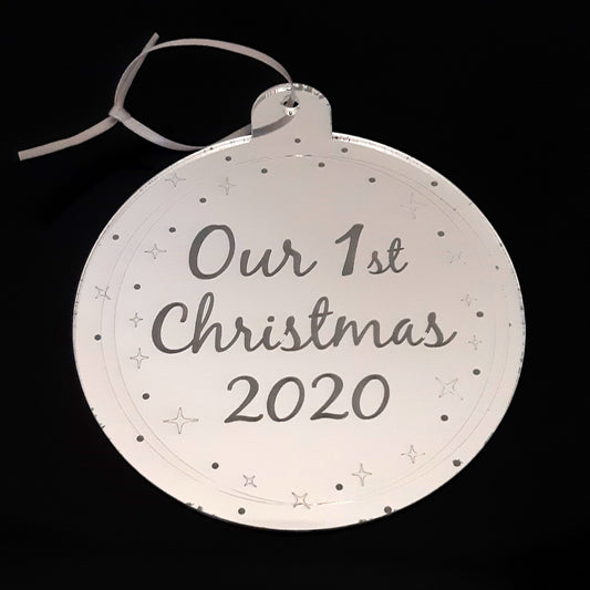 Boule de Noël gravée « Notre 1er Noël et année » Décorations pour sapin de Noël en miroir