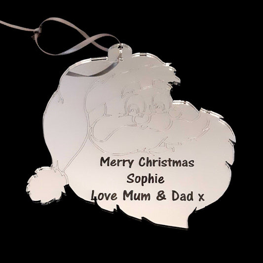Décorations de sapin de Noël gravées sur mesure avec Père Noël et miroir