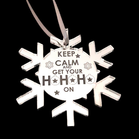 Décorations de Noël gravées en forme de flocon de neige « Keep Calm & Get Your Ho Ho Ho On » en miroir