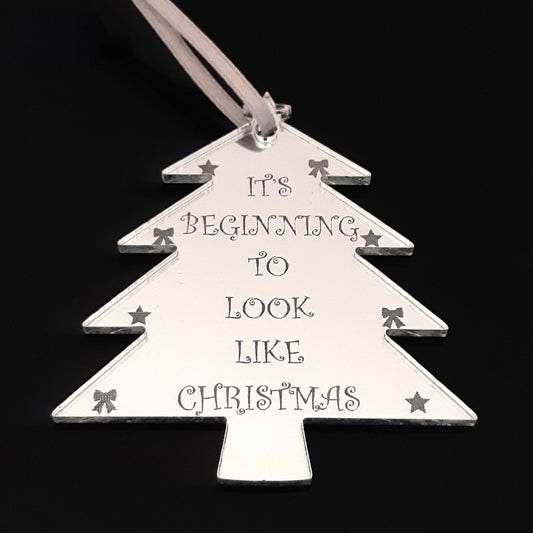 Arbre « Ça commence à ressembler beaucoup à Noël » Décorations d'arbre de Noël gravées en miroir