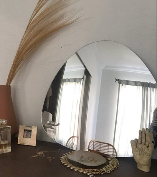 Miroirs triangulaires en forme de galet avec support blanc et crochets