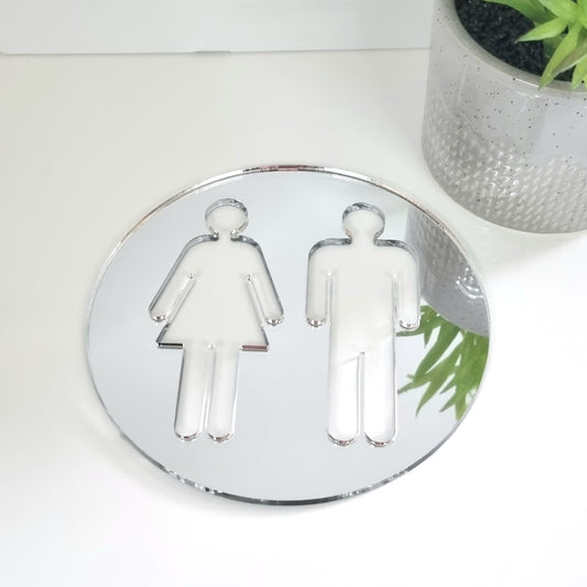 Panneau de toilettes pour hommes et femmes - Rond - Miroir