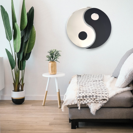 Miroirs acryliques noirs et argentés en forme de Yin Yang, tailles sur mesure et services de gravure