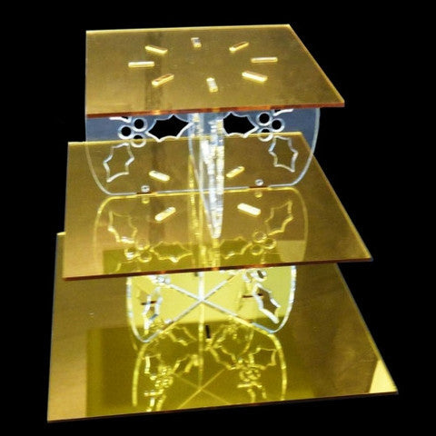 Présentoir à gâteaux carré à trois niveaux en forme de houx