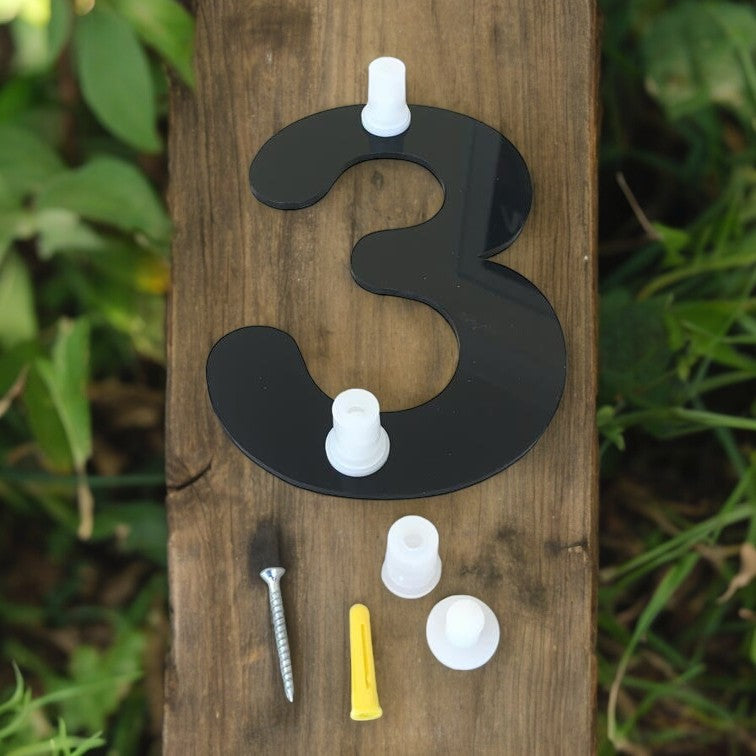 Comprend : plaque de numéro de maison, vis, chevilles, guide de fixation et fixations flottantes comme illustré.