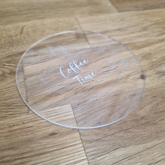 Dessous de verre - Dimensions hors tout : 100 mm. Découpés dans de l'acrylique de 3 mm d'épaisseur.