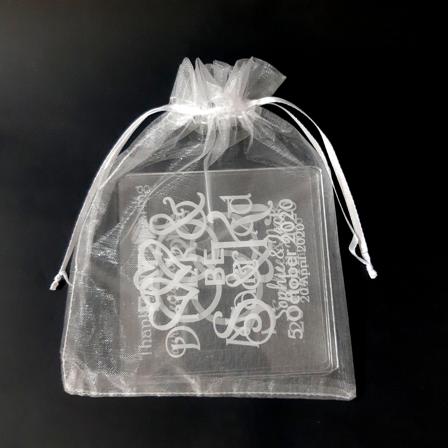 Tous les produits sont expédiés avec un revêtement de protection en plastique, qui doit être retiré avant utilisation, des pieds en silicone sont fournis séparément pour une utilisation si nécessaire et présentés dans un sac cadeau en organza blanc.