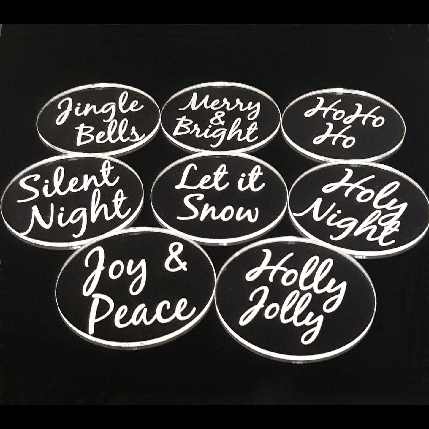 Ensemble de 8 : Jingle Bells, Douce nuit, Joie et paix, Joyeux et lumineux, Qu'il neige, Ho Ho Ho, Holly Night, Holly Jolly.