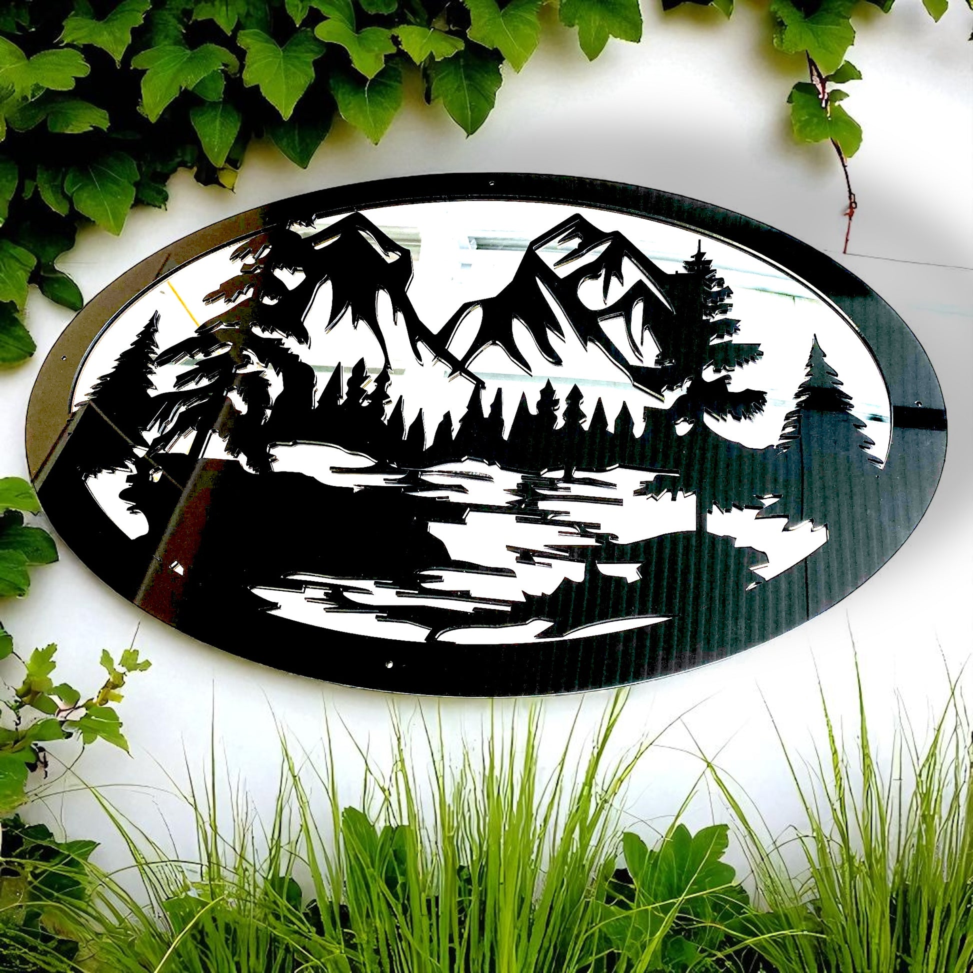 Oval Mountain Range Garden Mirror