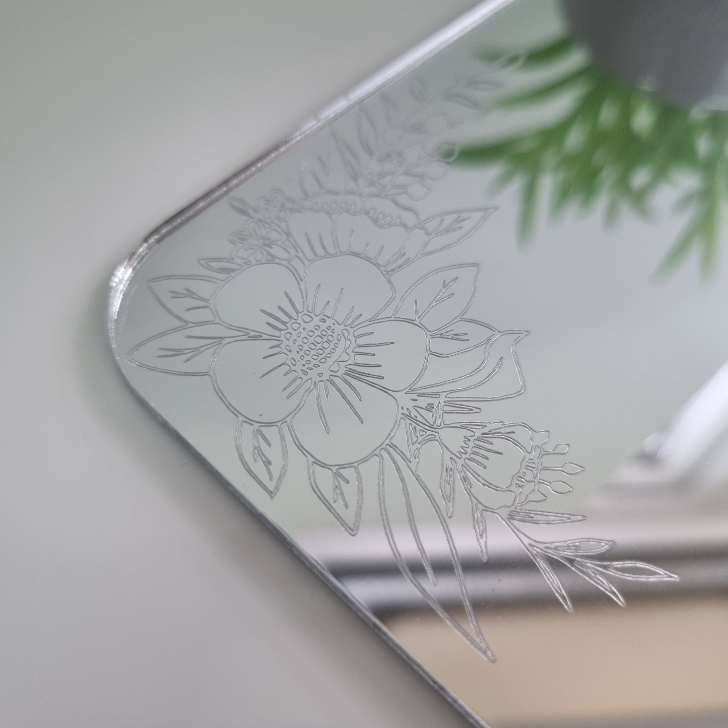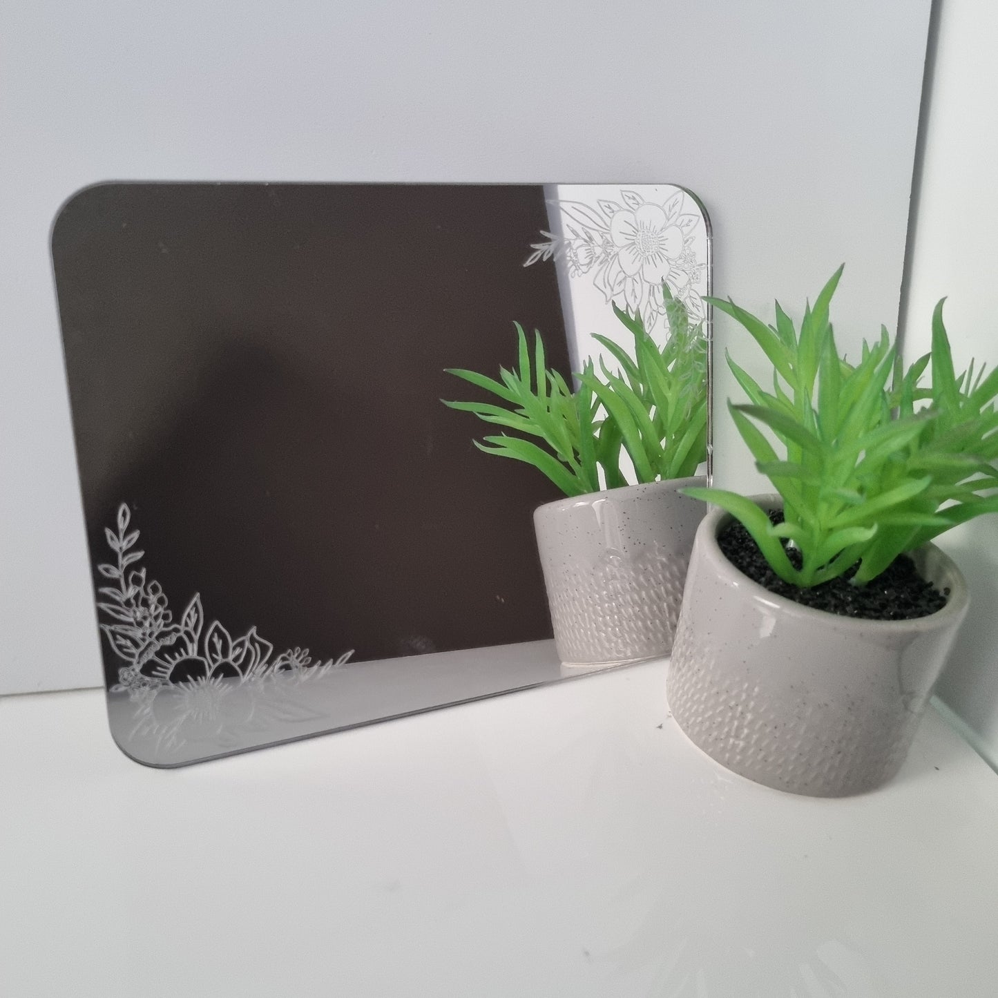 Our mirrors are cut from 3mm shatterproof, child safe acrylic and have laser polished edges.