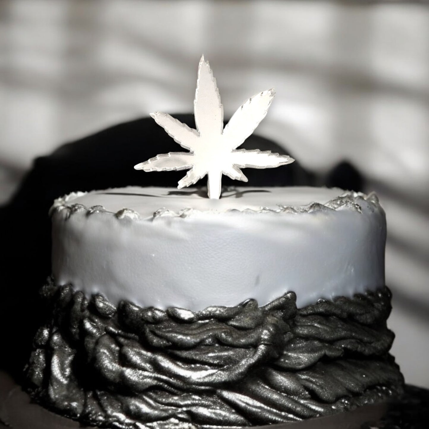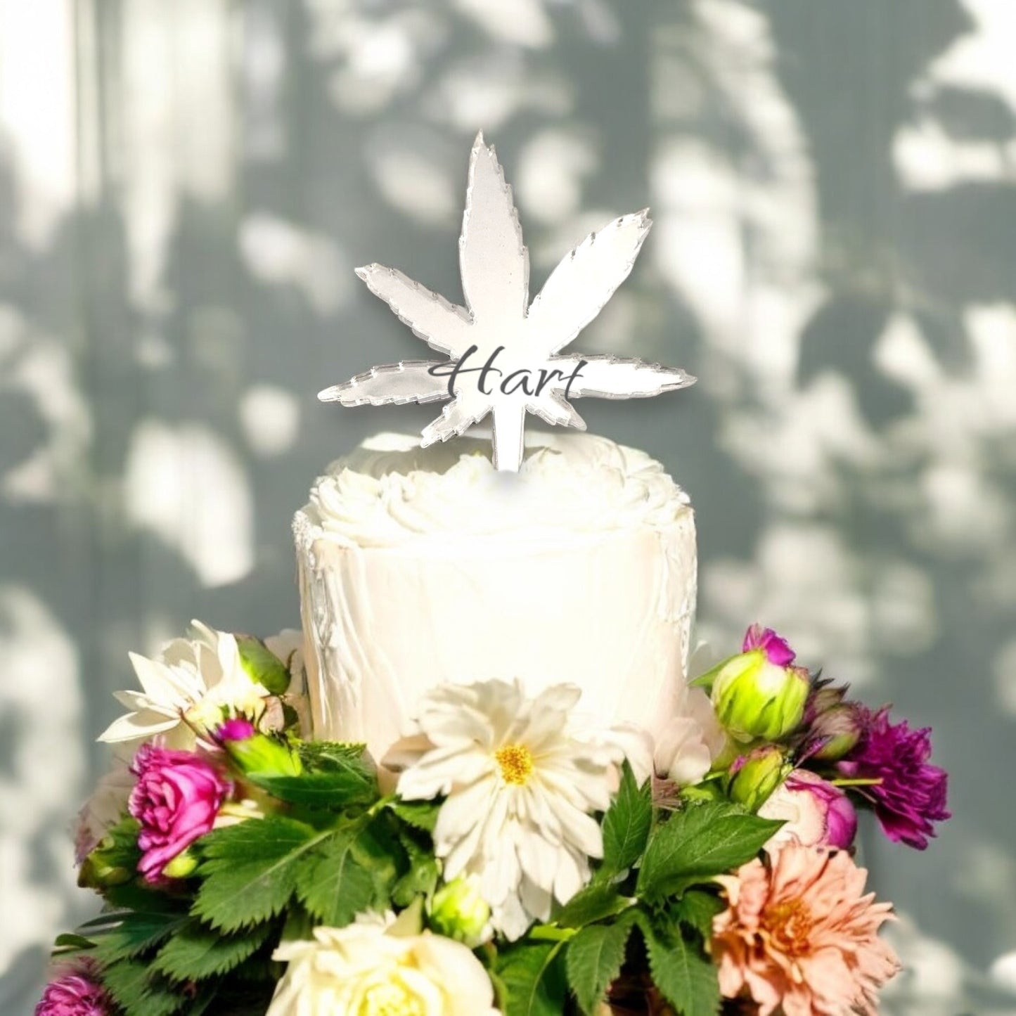 A laser cut cake topper made from 3mm shatter proof acrylic or 4mm veneered wood.