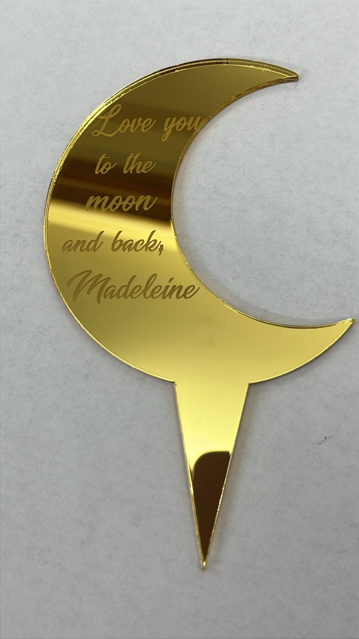 A laser cut cake topper made from 3mm shatter proof acrylic or 4mm veneered wood.