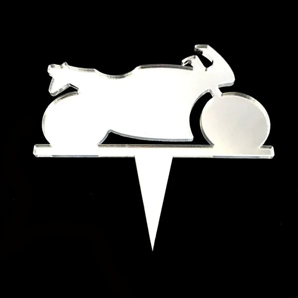A laser cut cake topper made from 3mm shatter proof acrylic or 4mm veneered wood.