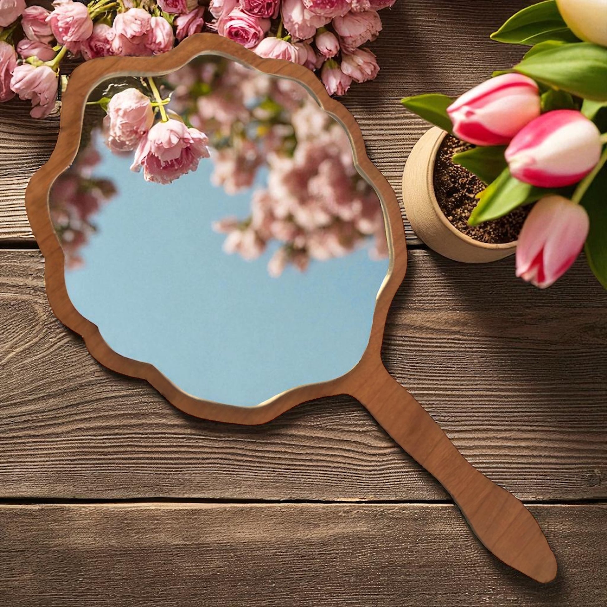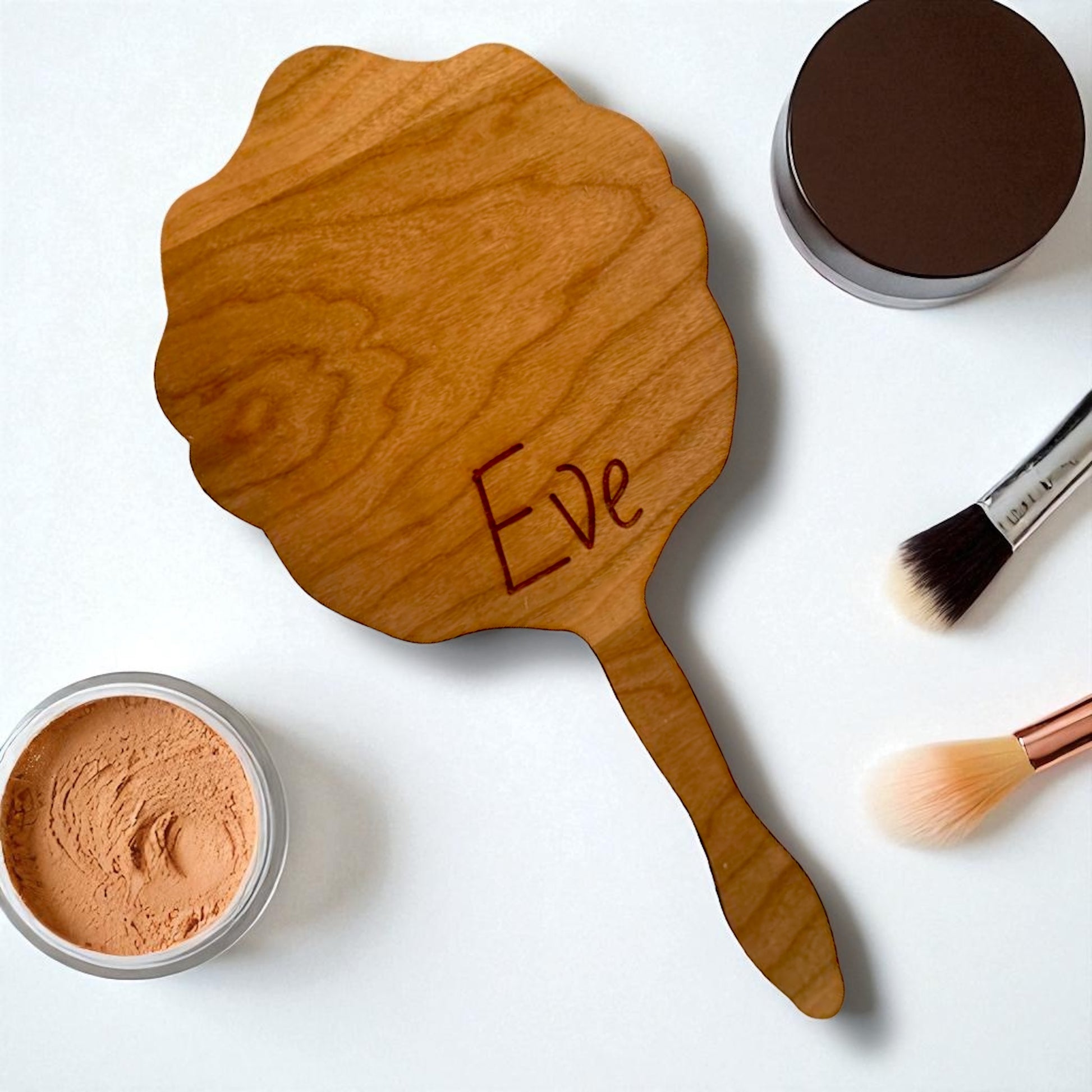 Our hand held mirrors are cut from 4mm oak veneer and 3mm shatterproof, child safe acrylic and have laser polished edges.