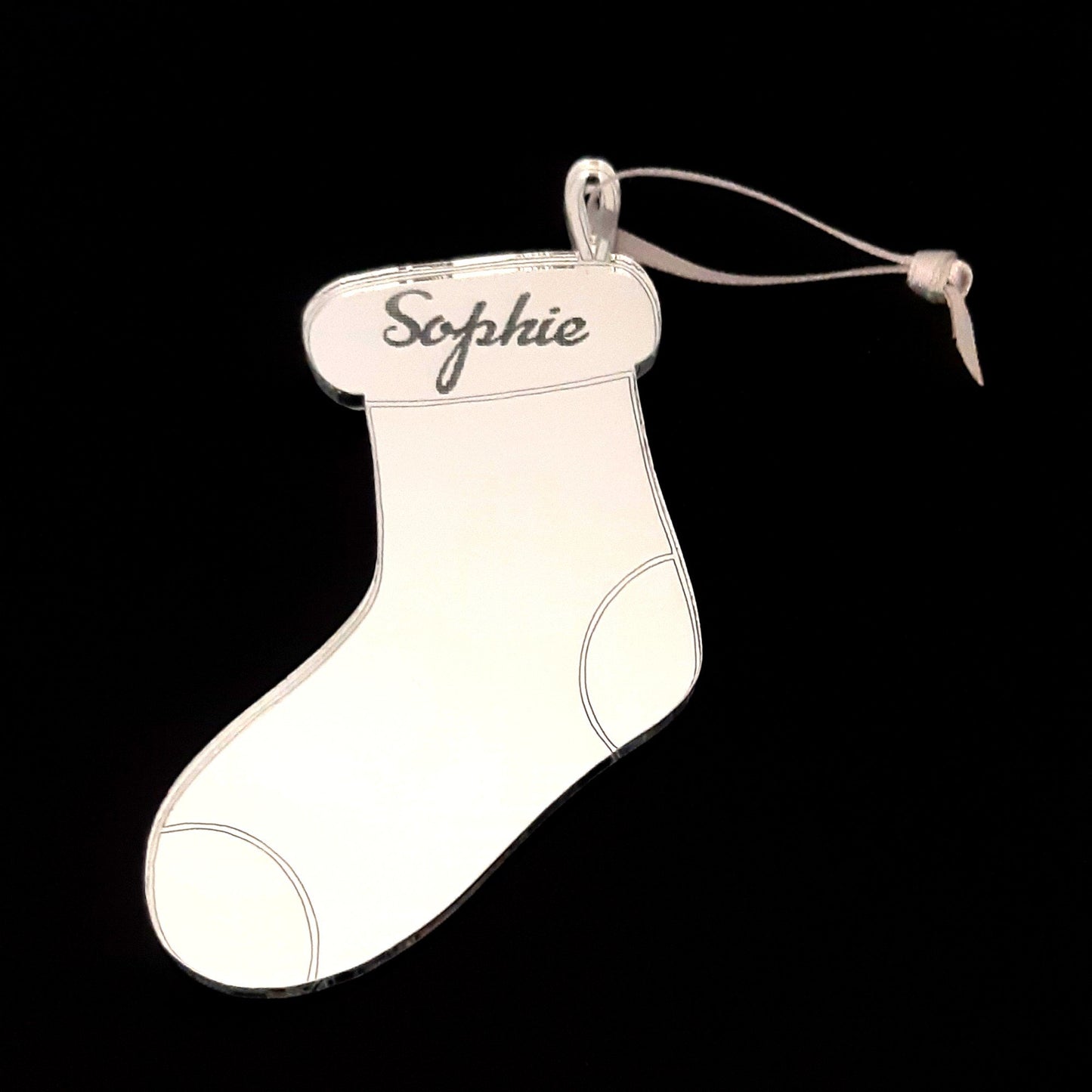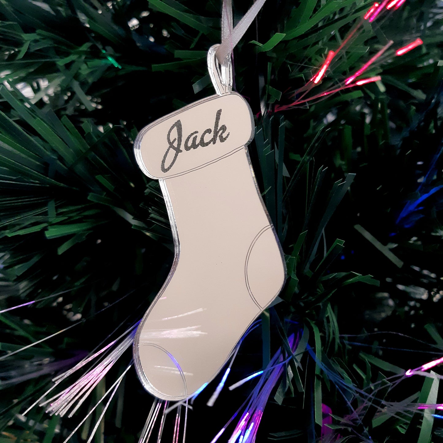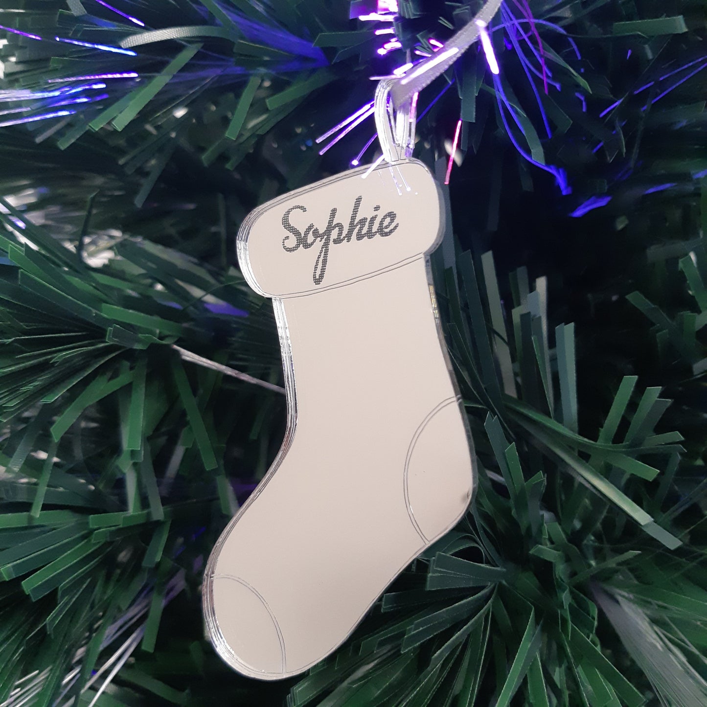 Stocking Personalised Engraved Christmas Tree Decorations Mirrored