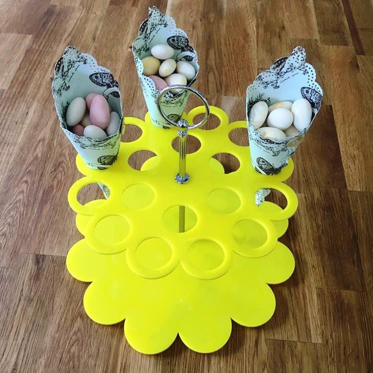 Holds 18 cones/favours, each hole measures 3cm - 1.25 inches in diameter.
