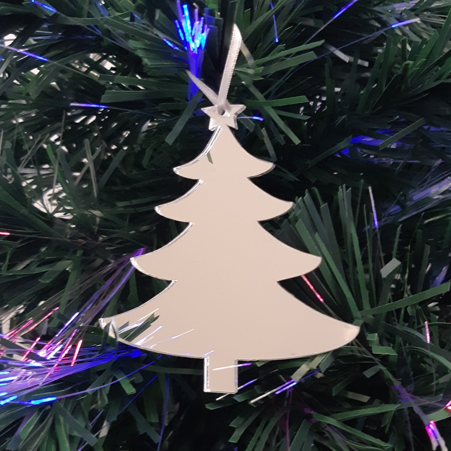 Our tree decorations are laser cut from 3 mm shatterproof, child safe acrylic.